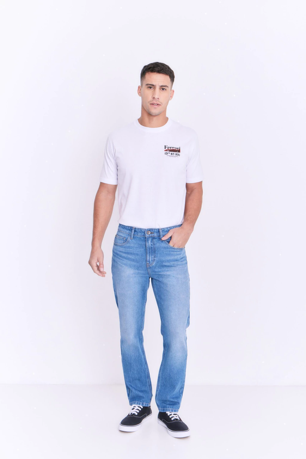 El Jean Necochea de Dromo está confeccionado en denim de excelente calidad, con moldería regular fit que garantiza comodidad y un calce clásico. Presenta un detalle de medio contraste en las costuras, que le aporta un estilo distintivo y moderno, ideal para looks casuales y urbanos.