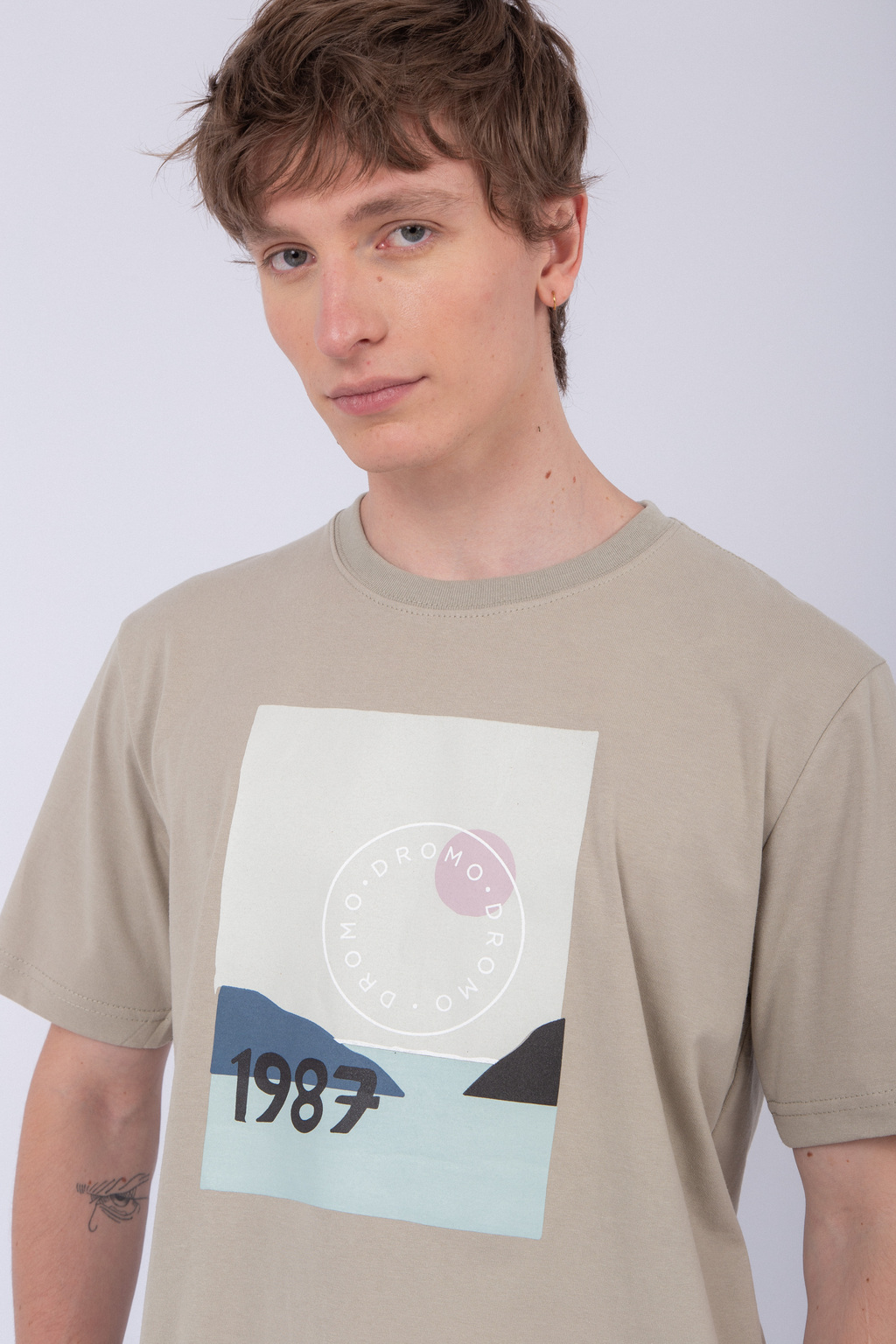 Remera de moldería regular fit confeccionada en jersey 24/1 peinado, suave al tacto y de excelente calidad. Presenta cuello redondo y mangas cortas, con una estampa frontal inspirada en el estilo urbano retro. Ideal para un look casual y atemporal.