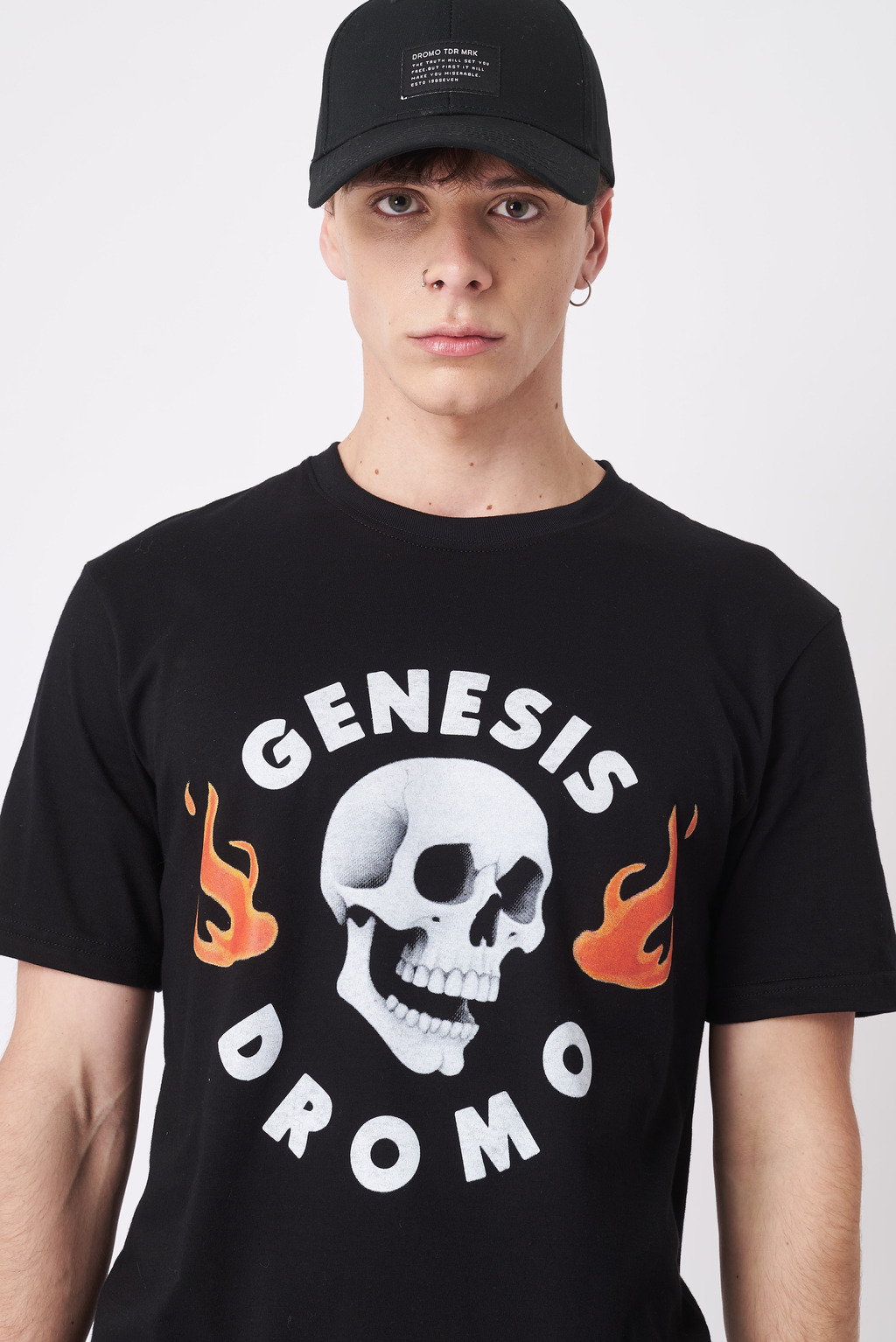 Remera de moldería básica confeccionada en jersey 30/1 peinado, liviana y suave al tacto. Incorpora una estampa en plastisol que aporta un detalle gráfico simple y moderno. Un básico versátil para sumar a tu look urbano con el sello de identidad DROMO.