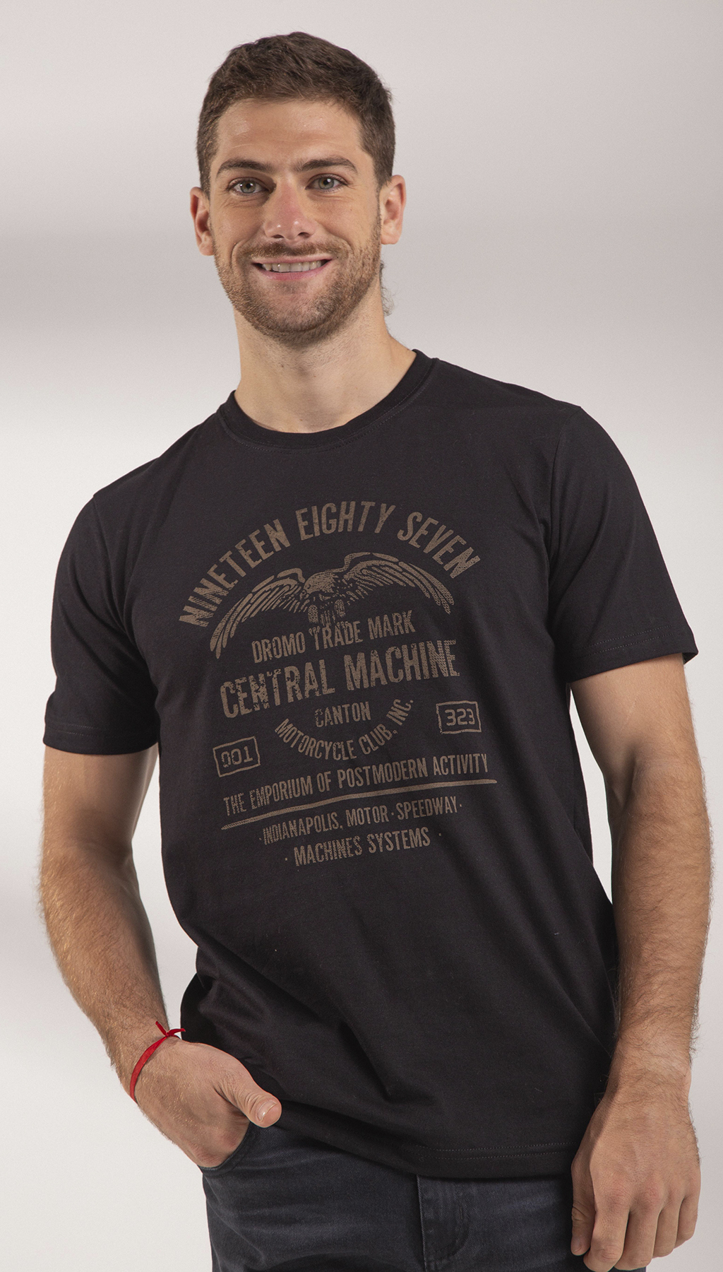 La Remera Nineteen de DROMO es una prenda esencial con estilo urbano. De manga corta y escote redondo, presenta un calce regular que se adapta cómodamente al cuerpo. Confeccionada en jersey 24/1 de algodón y poliéster, ofrece suavidad, resistencia y un look moderno gracias a su estampa frontal.